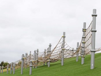 With its helical shape, the product “Twist” adapts to any landscape. Arches of different sizes can be combined at various angles. No matter whether the climbing structure is 5 or 500 m long, the net made of original Berliner U-Rope provides continuous climbing fun for young and old alike on a varied and challenging climbing course.